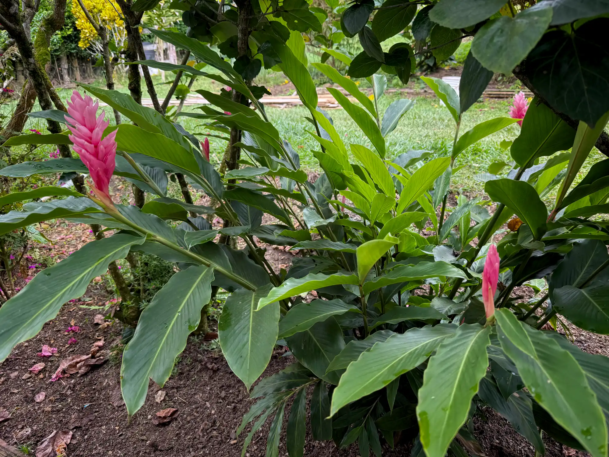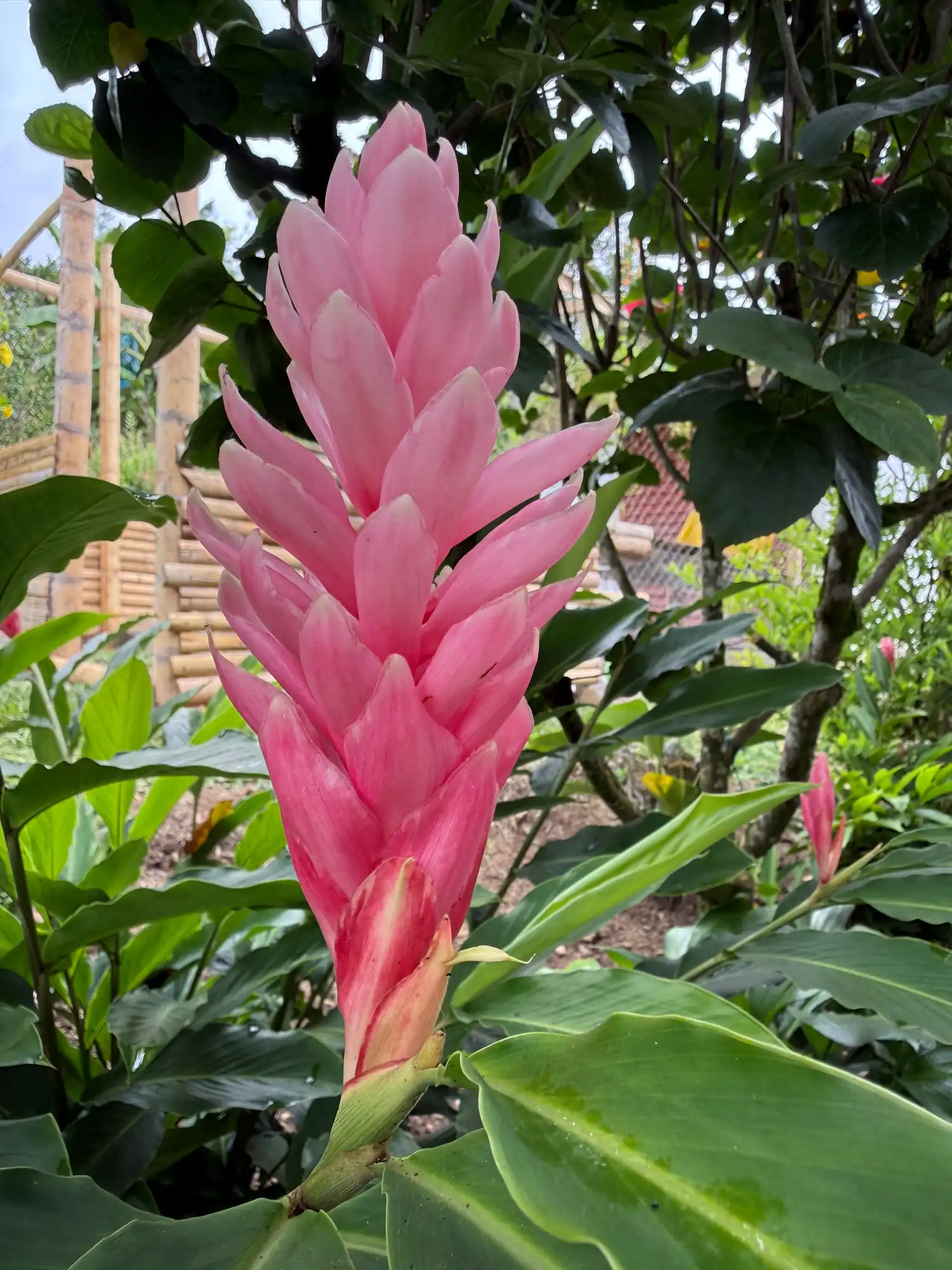 La Alpinia purpurata ‘Jungle Queen’ desarrolla tallos erguidos con hojas largas y lanceoladas que pueden superar el metro de longitud. Sus inflorescencias son grandes, erectas, de un rosa intenso y duradero, que destacan sobre el follaje verde. Es una planta vigorosa, que florece varias veces al año y atrae colibríes y mariposas, convirtiéndose en un punto focal en jardines tropicales y parques.