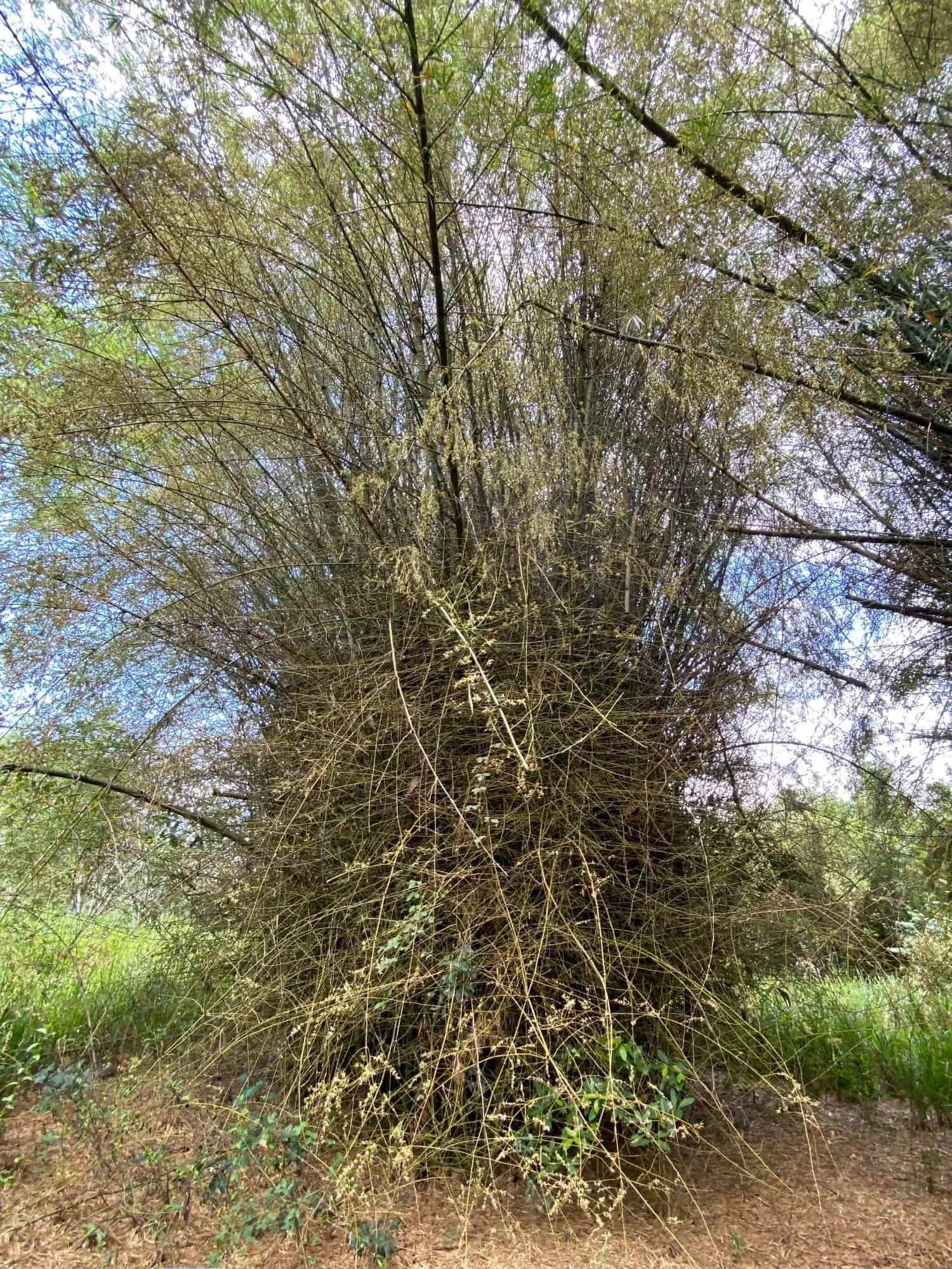 Bambusa bambos, comúnmente conocido como “Bambú Espinoso Gigante” o “Bambú Espinoso Indio”, es un bambú tropical agrupado de tamaño gigante de rápido crecimiento nativo del sudeste asiático. Se considera uno de los bambúes más valiosos del mundo ya que produce brotes comestibles, postes para construcciones pesadas y su grandes cantidades de biomasa. Debido a sus ramas espinosas y su denso crecimiento, Bambusa bambos es el mejor bambú para cercas vivas de protección alrededor de las fincas, ya que son prácticamente inexpugnables!