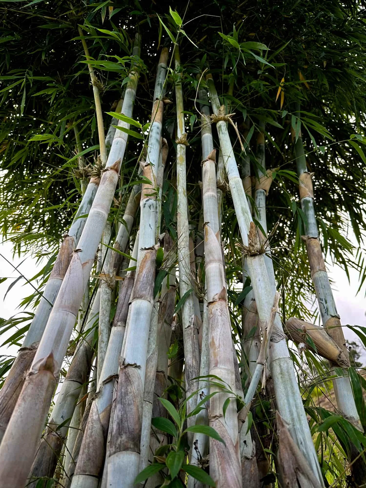 El Bambusa polymorpha, conocido como “Bambú Birmano, es un bambú tropical de gran tamaño y extraordinaria belleza. Sus tallos jóvenes presentan un tono gris-blanquecino, lo que le da un aspecto elegante y muy distintivo entre los bambúes gigantes. Con el tiempo, las cañas se tornan verde claro y pueden alcanzar de 15 a 25 metros de altura.